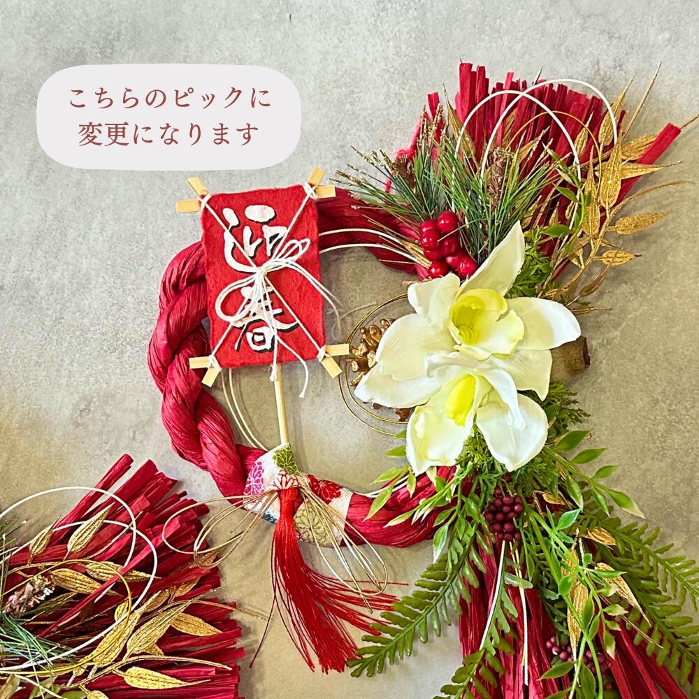 #しめ縄 #しめ飾り #おしゃれ #正月飾り #手作り #ハンドメイド #玄関 #赤白 #しめ縄リース #造花 #アーティフィシャルフラワー